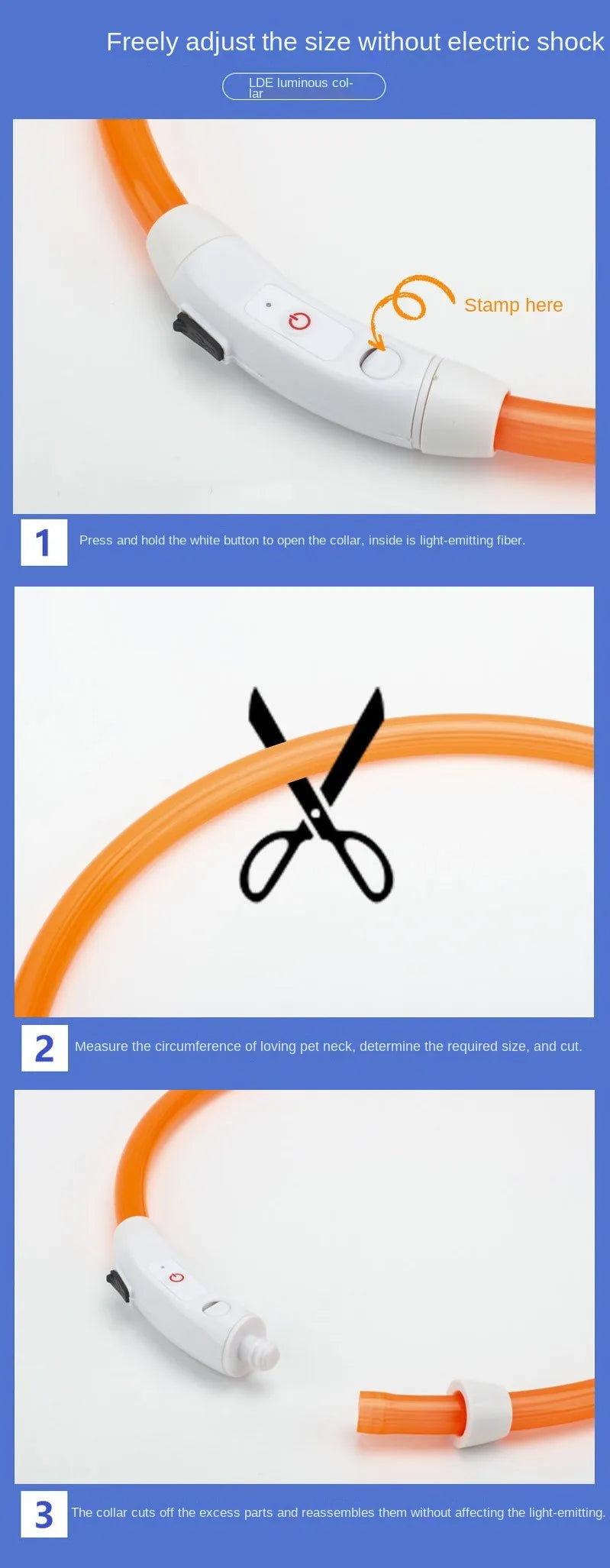 One Size Fits All: Necklace measures 50cm (Note: Length includes switch) -Can be cut to any length using scissors to fit your pet! Perfect fit!