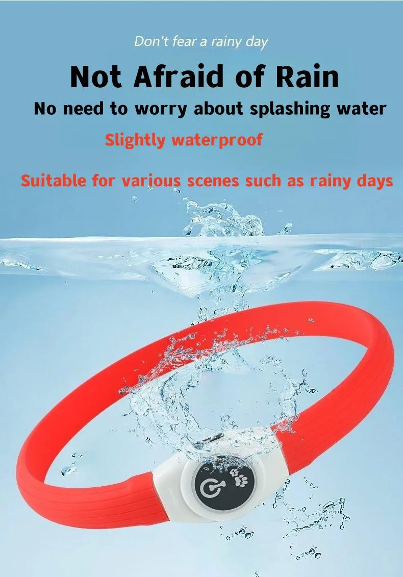 The LED collar is made of PVC waterproof strip material + LED lights.