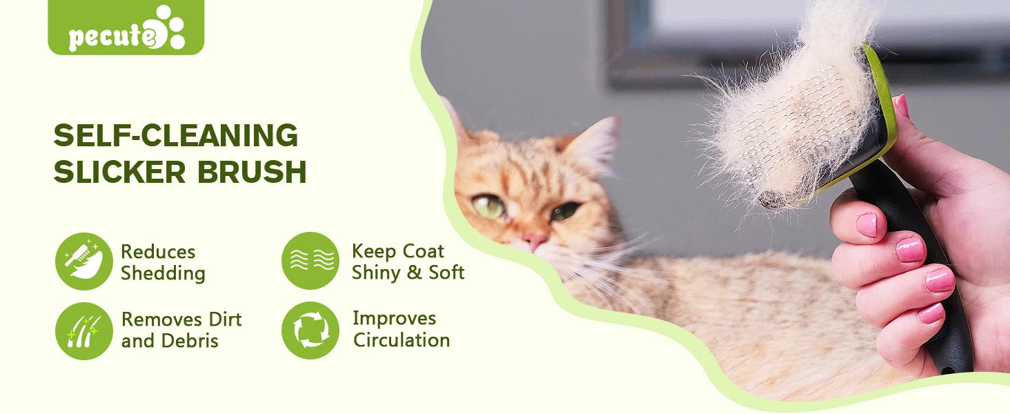 Pecute Self-Cleaning Slicker Brush for Dogs Cats Lightweight Brush for Shedding Massaging Grooming Brush Gently Removes